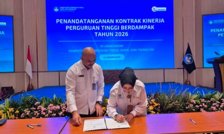 SBS | SURABAYA – Rektor Universitas Hang Tuah (UHT), Laksamana Muda (Purn) Dr. Ir. Avando Bastari, M.Phil., M.Tr.Opsla., IPM., ASEAN Eng., menghadiri Penandatanganan Kontrak Kinerja Perguruan Tinggi Berdampak Tahun 2026 yang diselenggarakan oleh Keme...