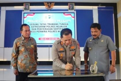 Suaraperistiwa.web.id | NGANJUK – Kapolres Nganjuk AKBP Henri Noveri Santoso, S.H., S.I.K., M.M., meresmikan Gedung Tatag Trawang Tungga Satuan Reserse Kriminal (Satreskrim) Polres Nganjuk, sekaligus ...